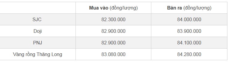 Cụ thể, hôm nay, Tập đoàn Vàng bạc đá quý Doji hạ giá vàng nhẫn 9999 về mức 82,9-83,9 triệu đồng/lượng (mua - bán), giảm 600.000 đồng/lượng ở cả chiều mua và bán so với kết phiên giao dịch cuối tuần qua.