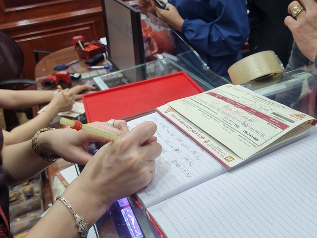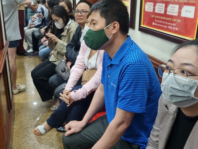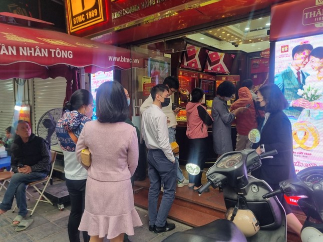 Theo ghi nhận của PV Tiền Phong, tại các cửa hàng vàng bạc trên Phố Trần Nhân Tông (Hai Bà Trưng, Hà Nội) lượng người đổ xô đi mua bán đông tạo nên bầu không khí nhộn nhịp. Thậm chí, người dân phải chen chúc, xếp hàng xuyên trưa và đợi cả tiếng mới đến lượt.