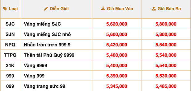 Cụ thể, lúc 8h20, tập đoàn Phú Quý niêm yết giá vàng miếng SJC ở mức 56,00-58,00 triệu đồng/lượng, tăng hơn 1 triệu đồng/lượng so với cuối phiên hôm qua.