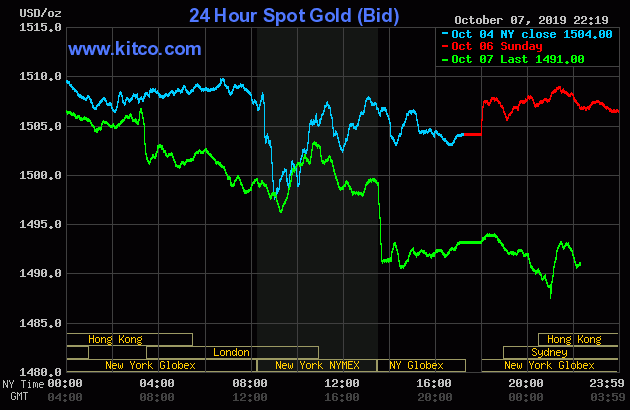 Đóng cửa phiên giao dịch ngày thứ Hai, giá vàng giao kỳ hạn tháng 12/2019 trên sàn New York giảm 8,50 USD/ounce tương đương 0,6% xuống 1.504,40 USD/ounce.