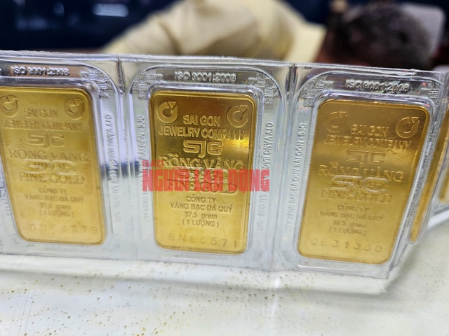 Giá vàng miếng SJC lao dốc trong bối cảnh giá vàng thế giới tiếp tục duy trì ở mức cao trên 2.200 USD/ounce.
