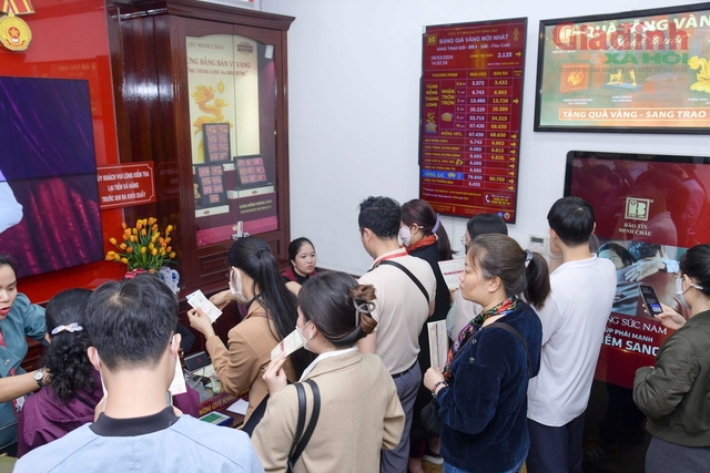 Ghi nhận của phóng viên trong ngày 6/3 và 7/3, mặc dù giá vàng tăng cao nhưng tại các cửa hàng kinh doanh vàng, khá đông người dân ghi phiếu, xếp hàng chờ đến lượt giao dịch.