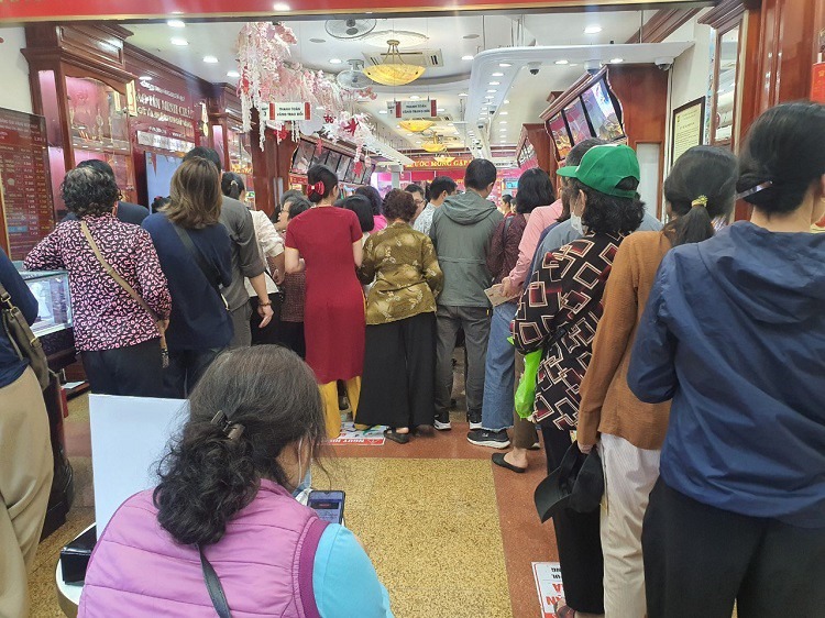 Trong đó, số lượng người mua đông hơn người bán nên các cửa hàng luôn trong tình trạng “cháy hàng”, khách muốn mua chỉ được giới hạn số lượng vàng cần mua, trả tiền trước, viết giấy biên nhận, hẹn ngày lấy vàng sau.