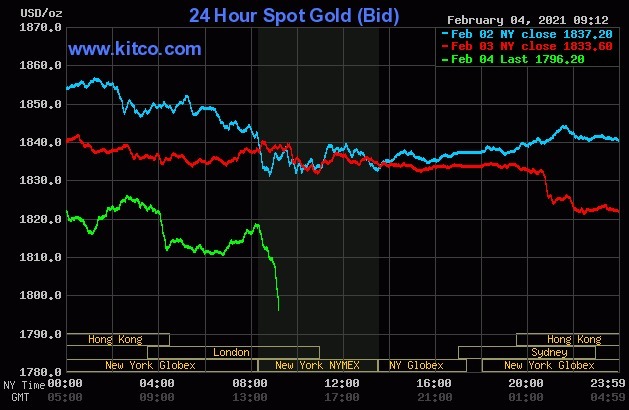 Mở cửa phiên Mỹ, giá vàng thế giới giao ngay giảm hơn 20 USD, hiện về quanh 1.796 USD một ounce. Mức giảm cả ngày vì thế lên hơn 37 USD.