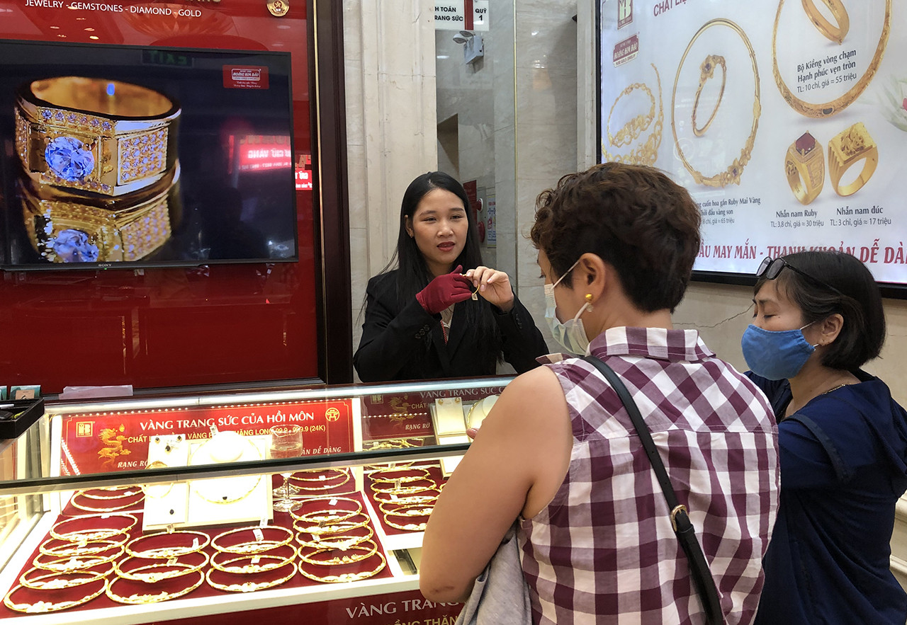 Tương tự, tại một cửa hàng vàng khác trên cùng con phố, nhân viên bán hàng nói rằng, cửa hàng mở bán từ 8h00 sáng nhưng đến 11h00 mới có một số khách hàng đến mua nữ trang, nhẫn cưới.