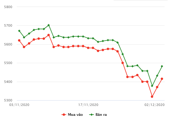 02/12/2020 17:15Giá vàng trong nước tăng mạnh trở lại