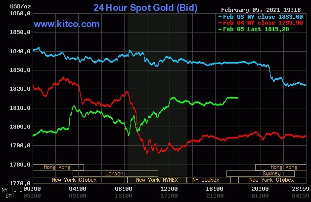 Kim loại quý tăng mạnh trong phiên 5/2, chốt tại 1.815 USD một ounce. Tuy nhiên, tính chung cả tuần trước, giá giảm 1,9% - mạnh nhất kể từ đầu tháng 1, chủ yếu do lợi suất trái phiếu chính phủ Mỹ tăng cao. Việc này làm giảm sức hấp dẫn của công cụ không trả lãi như vàng.