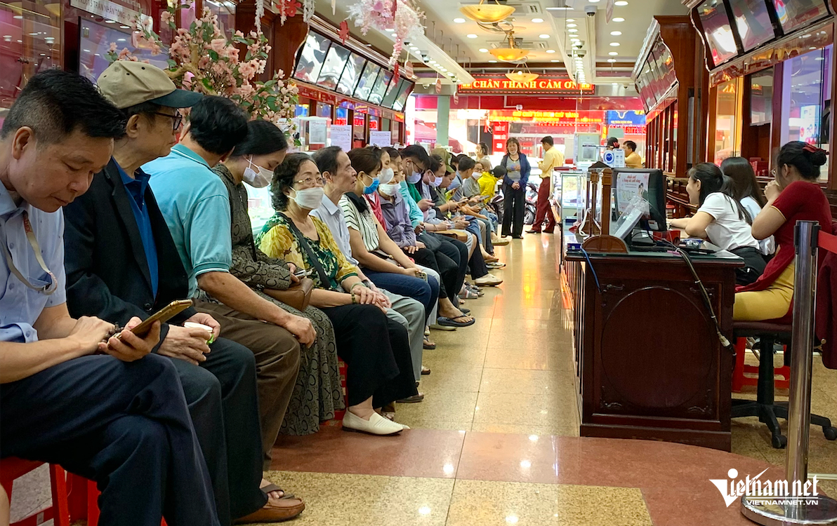 Chỉ 30 phút sau khi mở cửa, hơn 100 người đã lấy số chờ. Trong tiệm, người mua ngồi xếp hàng, kéo dài từ quầy giao dịch ra đến tận cửa.