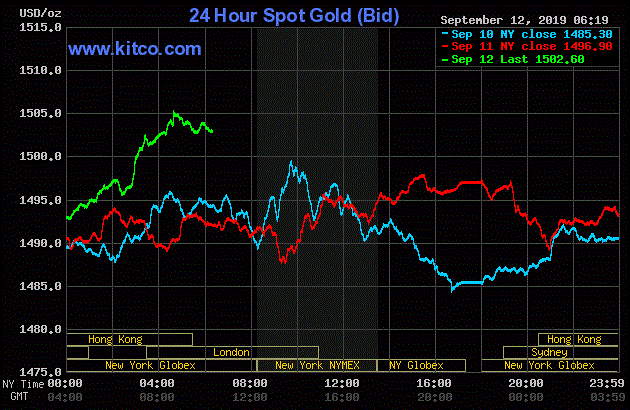 13/09/2019 13:52Giá vàng vọt tăng trở lại, vượt ngưỡng 1.500 USD