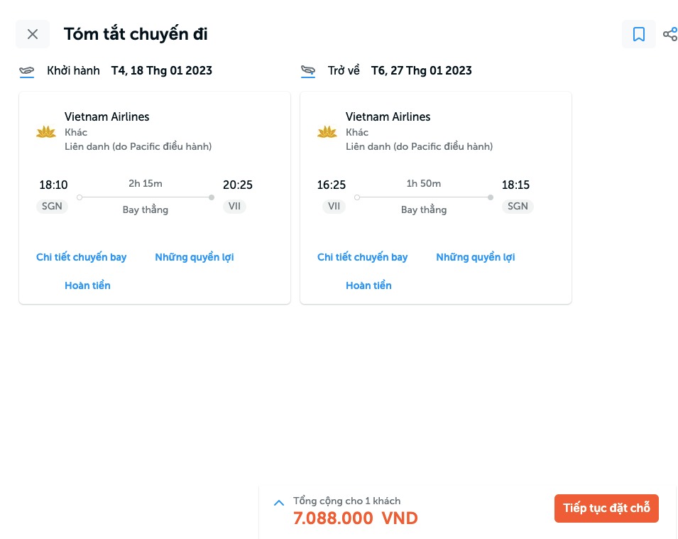 Giá vé khứ hồi chị check của hãng Vietjet Air là hơn 6,8 triệu đồng, hãng Vietnam Airlines, hãng Bamboo Airways khoảng 7 triệu đồng (mức giá đã gồm thuế, phí).
