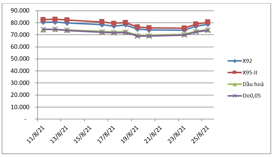 26/08/2021 22:19Giá xăng dầu đồng loạt giảm mạnh