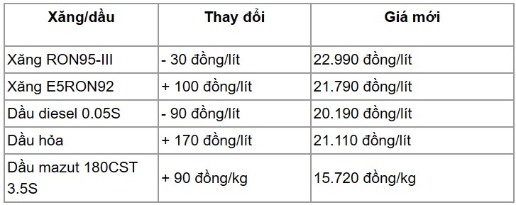 Mức giá này có hiệu lực từ 15h00 ngày 30/11/2023. Tính từ đầu năm 2023 đến nay, giá xăng đã có 34 đợt điều chỉnh, trong đó có 18 đợt tăng, 12 đợt giảm và 4 đợt giữ nguyên.