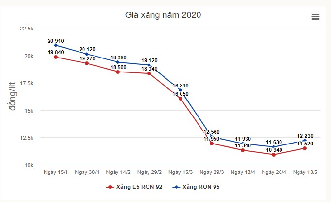 Sau điều chỉnh, mức giá bán lẻ tối đa với xăng E5 RON 92 là 11.520 đồng/lít và xăng RON 95 là 12.235 đồng/lít. Như vậy, sau 8 lần giảm liên tiếp, giá xăng trong nước đã tăng trở lại. Đây cũng là lần đầu tiên xăng tăng giá kể từ đầu năm.