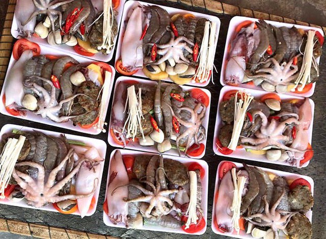 “Tất cả đều là đồ hải sản tươi ngon. Giá lấy 5 khay là 55.000 đồng/set. Lấy với số lượng lớn giá giảm còn 50.000 đồng/set”, chị Hạnh nói.