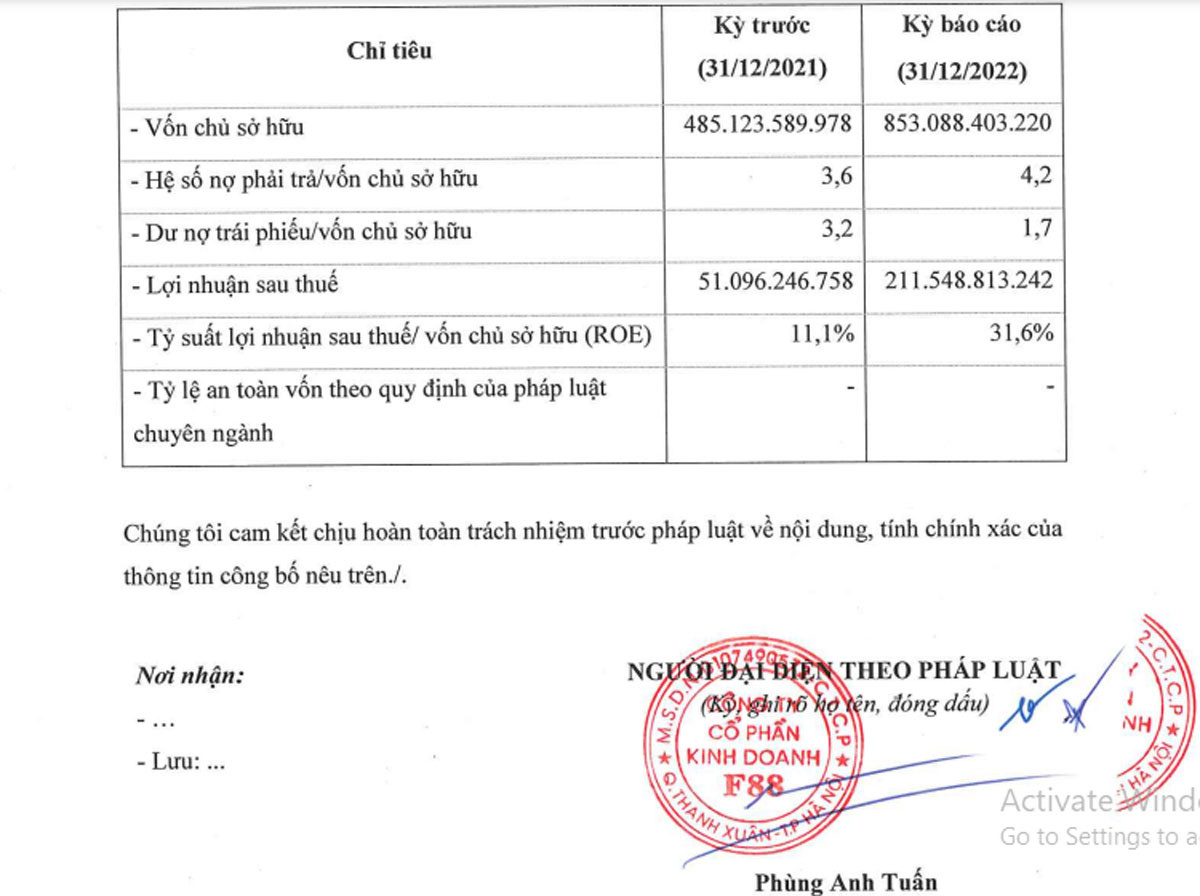 04/04/2023 16:30Giữa lùm xùm thu nợ, F88 công bố lợi nhuận tăng gấp 4 lần