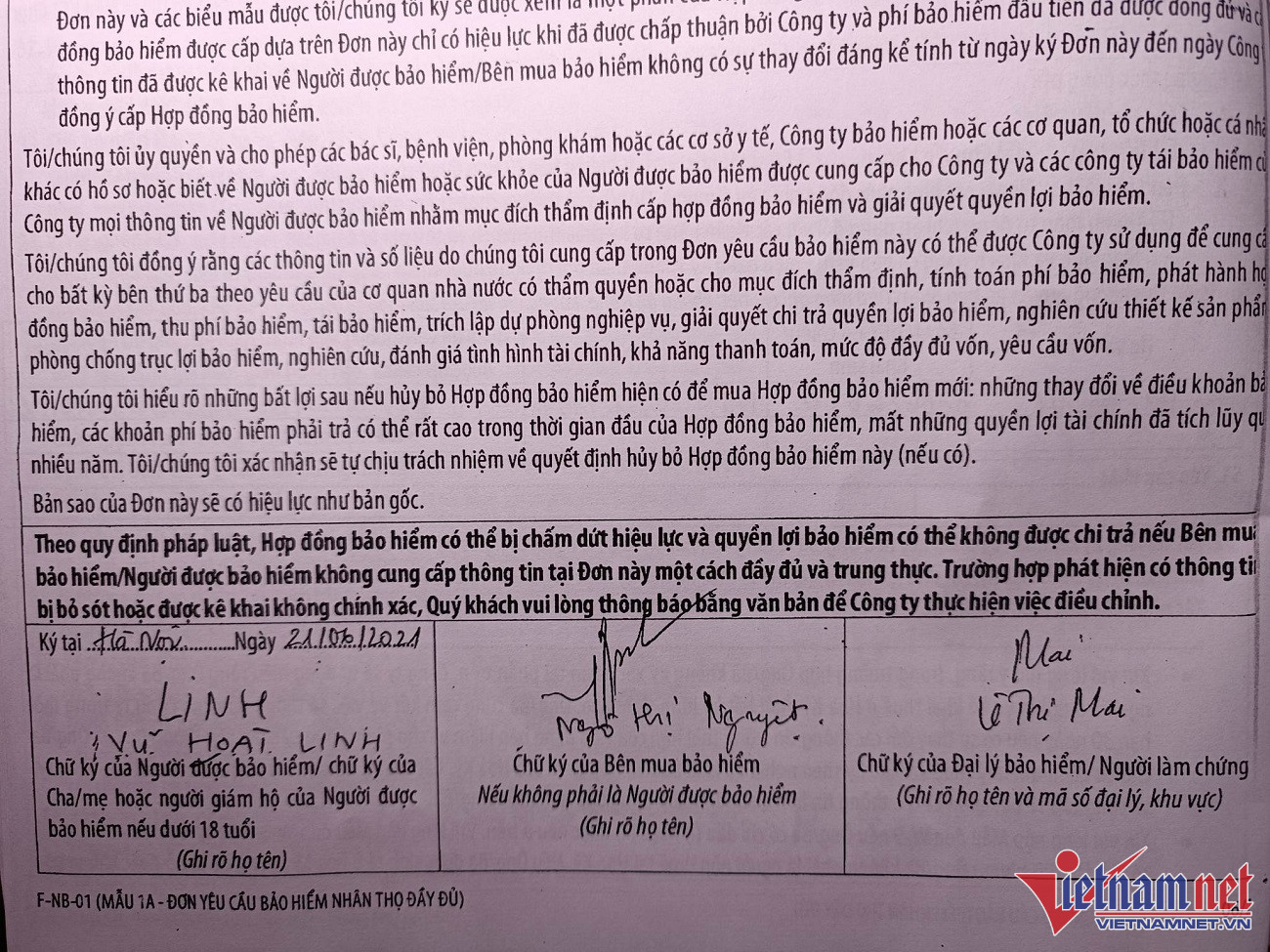 Một số điểm bất thường khác thể hiện trong hợp đồng bảo hiểm này nhưng mãi cho đến nay, khi xem lại bà Nguyệt mới biết.
