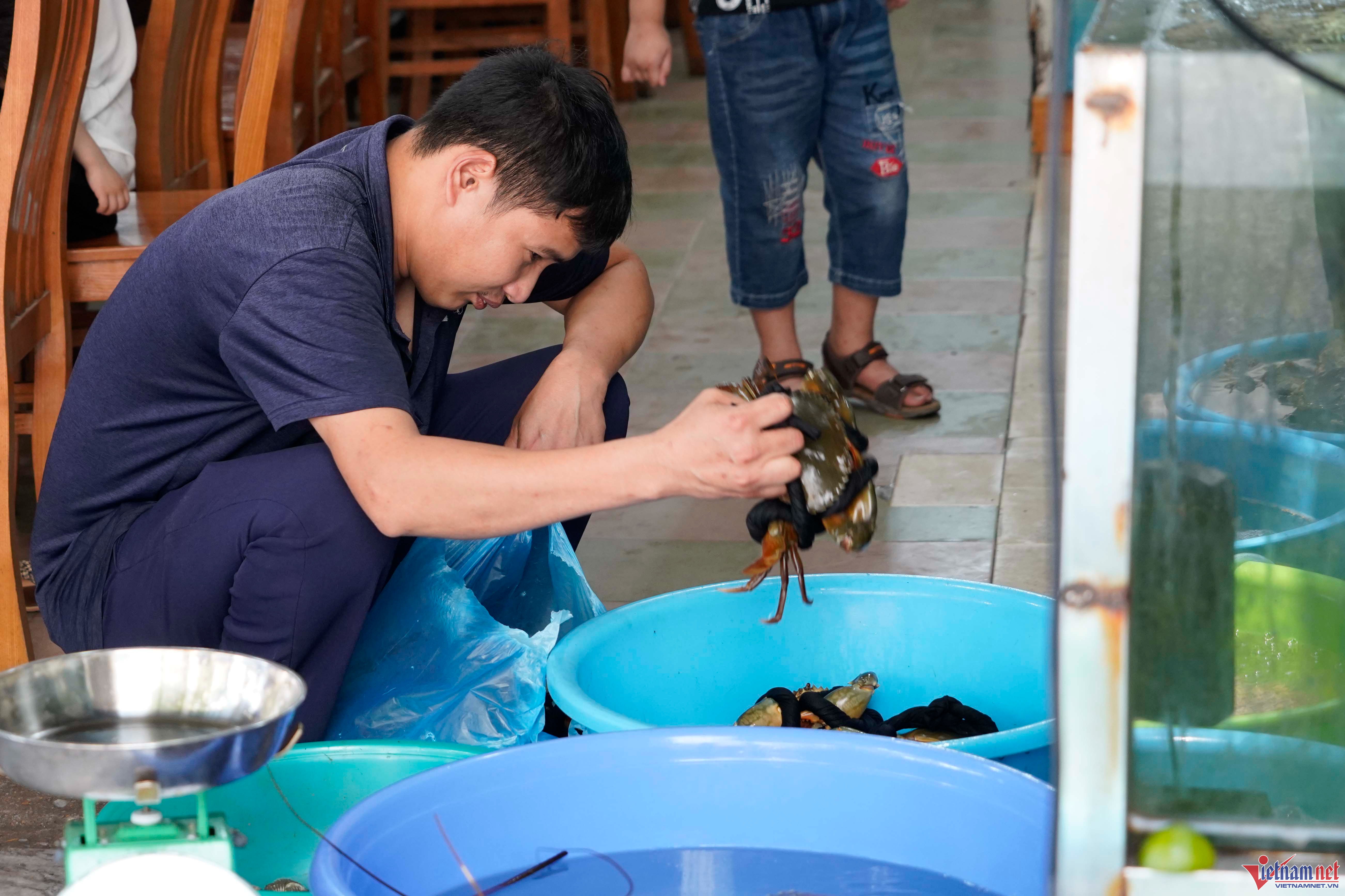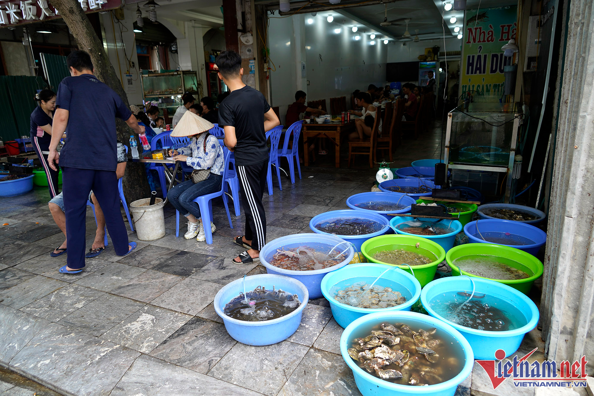 Tại khu vực phố ẩm thực và phố Vườn Đào, TP Hạ Long, từng đoàn xe ô tô, xe điện dừng trả khách trước cửa nhà hàng. Tấp nập người ra, vào để thưởng thức hải sản mặc dù thời điểm này giá hải sản đã tăng cao. Để phục vụ đủ cho du khách, mỗi nhà hàng từ hôm qua đã nhập hải sản gấp 3 lần ngày thường.