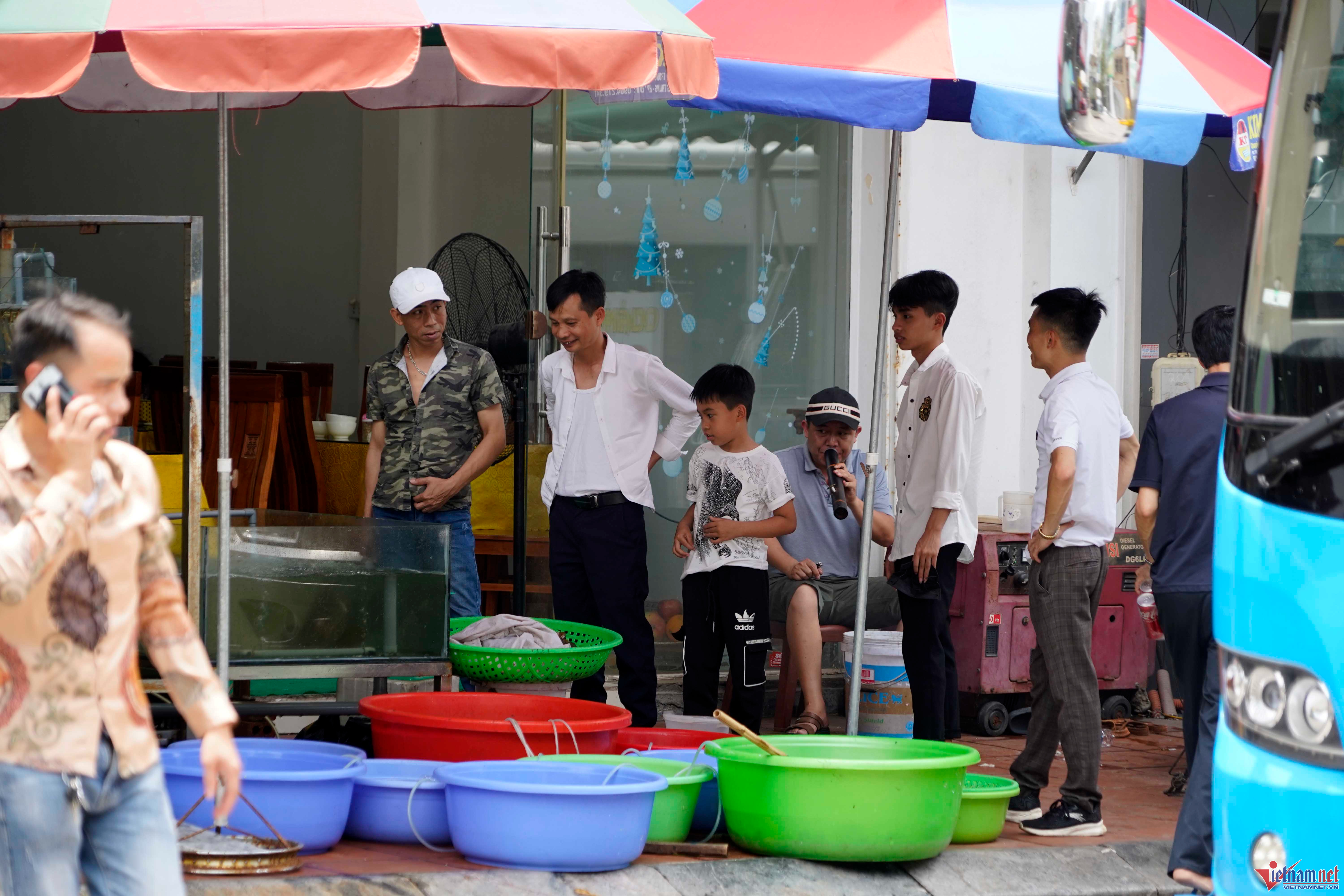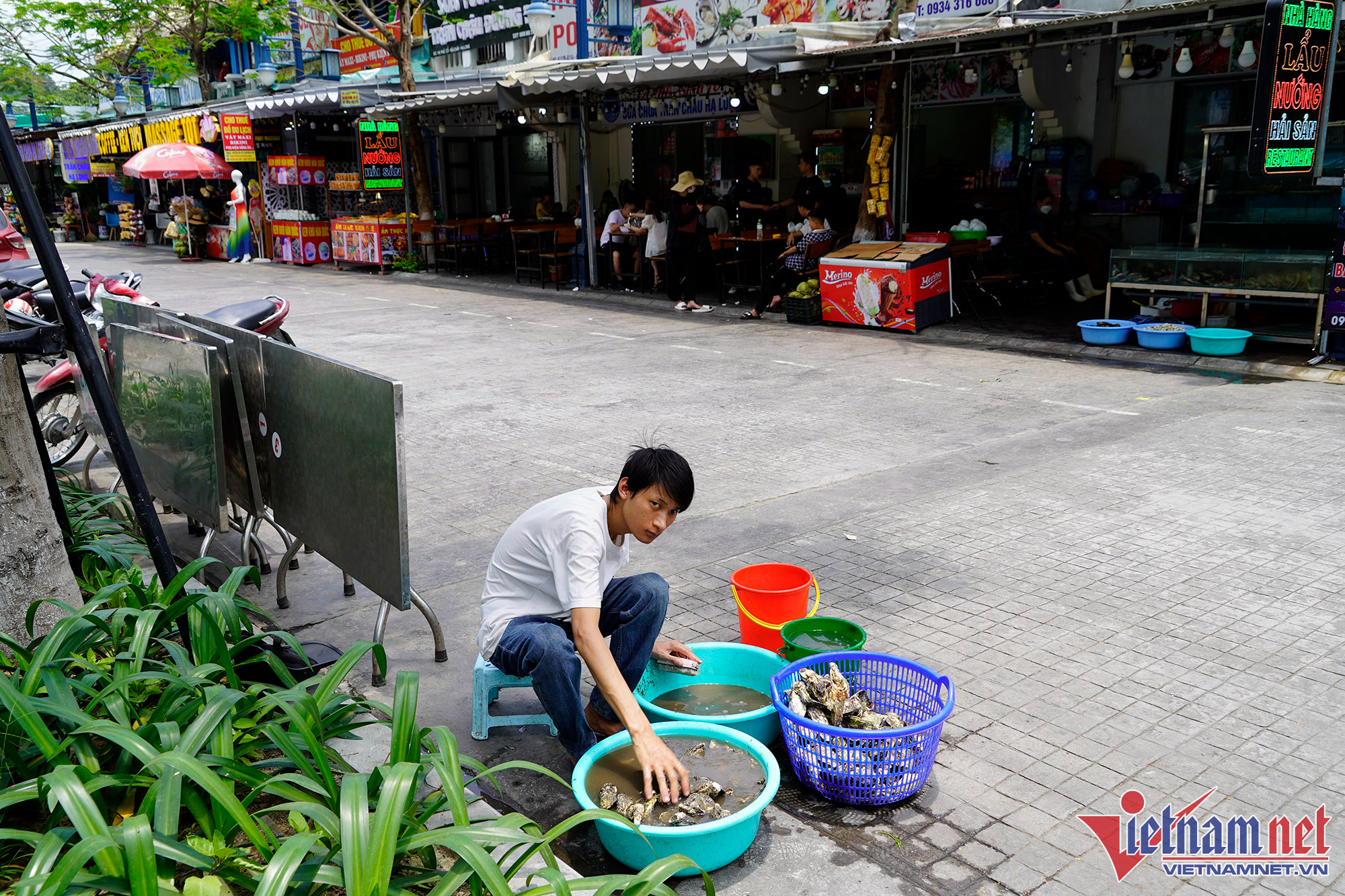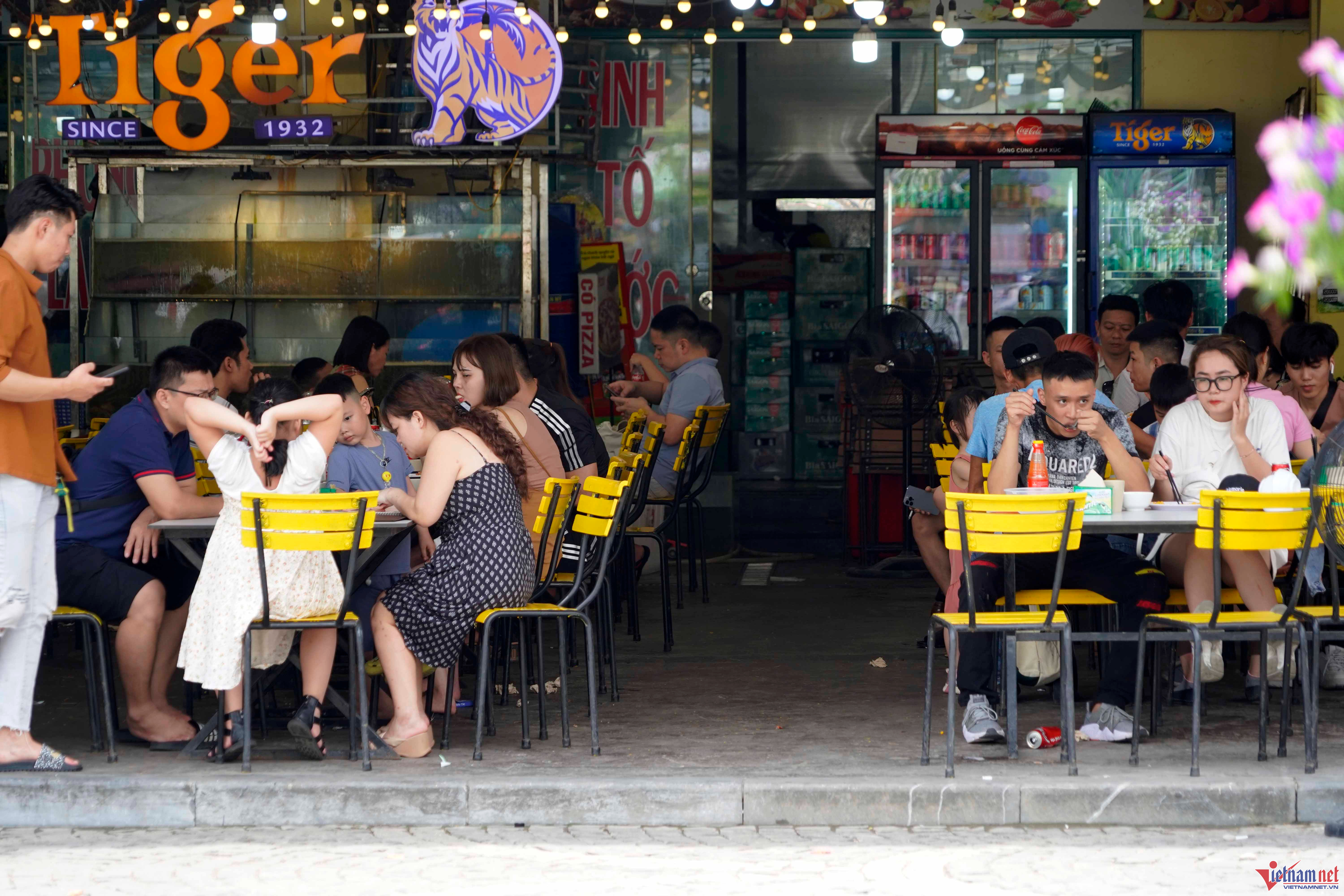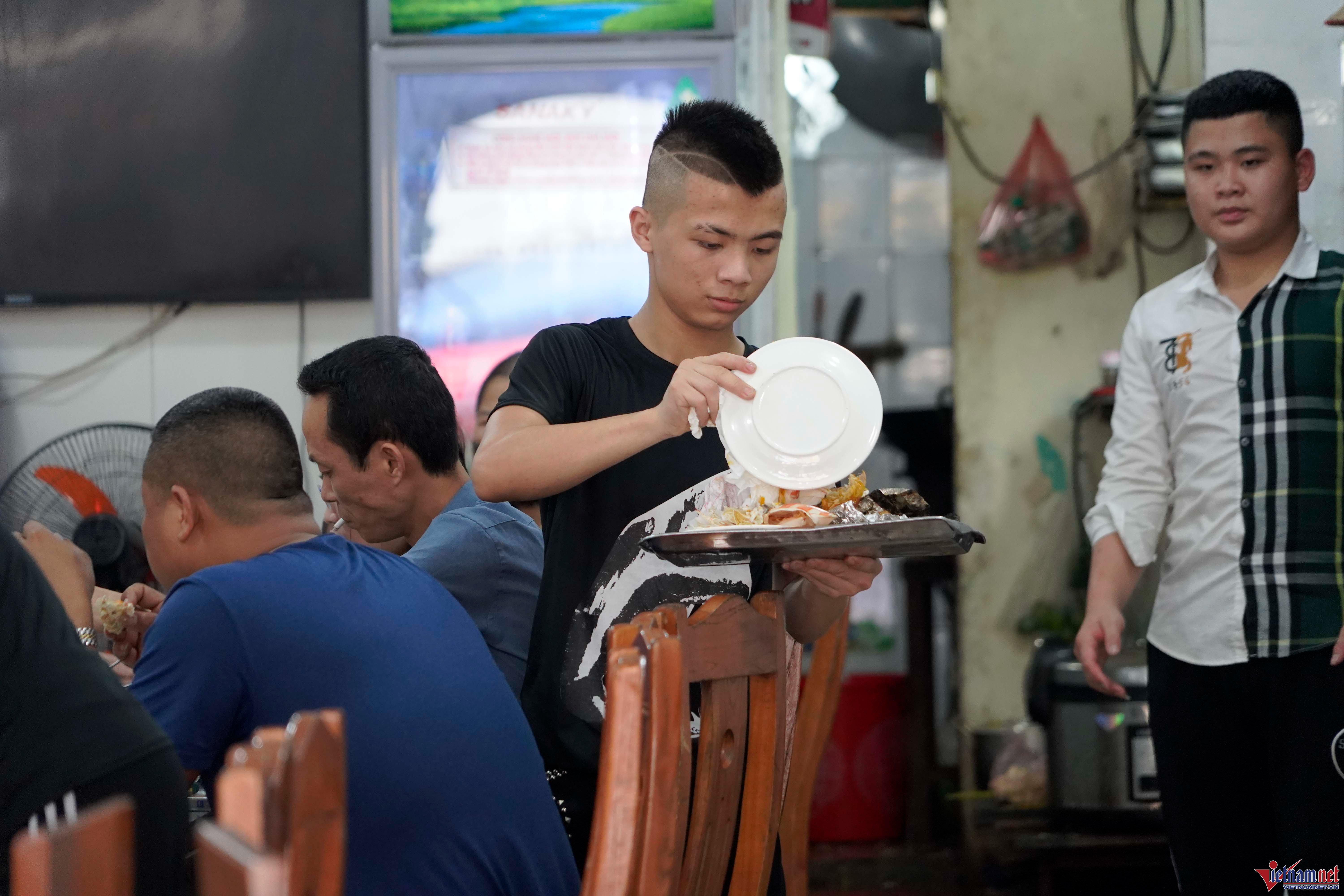 Do số lượng quá đông khách, các nhà hàng phải huy động người thân đến phụ giúp, mỗi quán có tới 3 người làm nhiệm vụ chào mời khách hàng.