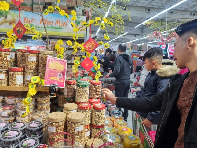 Đại diện siêu thị MM Mega Market, Big C, Lotte Mart... cho biết sức mua hiện tăng mạnh so với ngày thường và tăng 20-40% so với vài ngày trước đó, trong đó có nhiều nhóm hàng như thực phẩm thiết yếu, bia, nước giải khát, bánh kẹo và các loại hạt có thể tăng gấp 2-3 lần so với tháng thường.