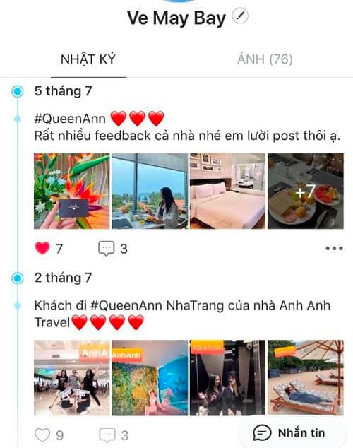 Để tạo niềm tin cho những cộng tác viên bán combo du lịch giá rẻ, Phòng vé Anh Anh đã tổ chức cho nhiều đoàn khách đi du lịch với giá rất rẻ, tạo được hiệu ứng và đánh giá tốt trên fanpage Facebook có tên "Phòng vé Anh Anh".