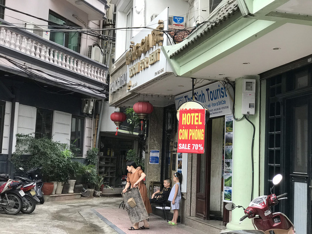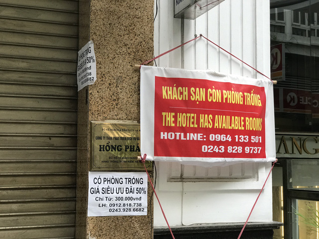 Chị Lê Thị Tuyết Mơ (chủ khách sạn Hồng Gia Tuệ trên 42A phố Hàng Giầy, quận Hoàn Kiếm, Hà Nội) cho biết: "Bây giờ một mình tôi vừa là chủ vừa là nhân viên. Bình thường giá phòng tại khách sạn của tôi là hơn 1 triệu đồng/đêm nhưng giờ giảm xuống còn 200.000 đồng/đêm nhưng vẫn không có người thuê ở. Doanh thu cả tháng chỉ được khoảng 4 đến 6 triệu đồng".