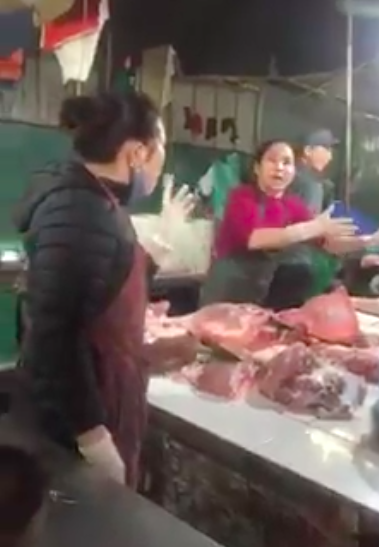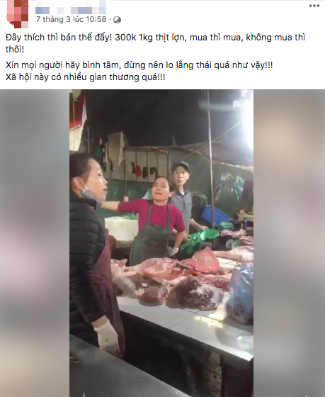 Chị S cho biết: "Lúc tôi đến quầy hàng thịt lợn thì một cảnh tượng lộn xộn, cãi vã giữa tiểu thương và khách hàng. Chủ yếu là khách hàng quá bức xúc vì phải mua thịt lợn với giá 300.000 đồng/kg. Khách hàng yêu cầu tiểu thương bán đúng giá như mọi ngày nhưng không được chấp nhận.