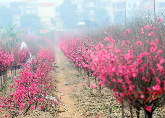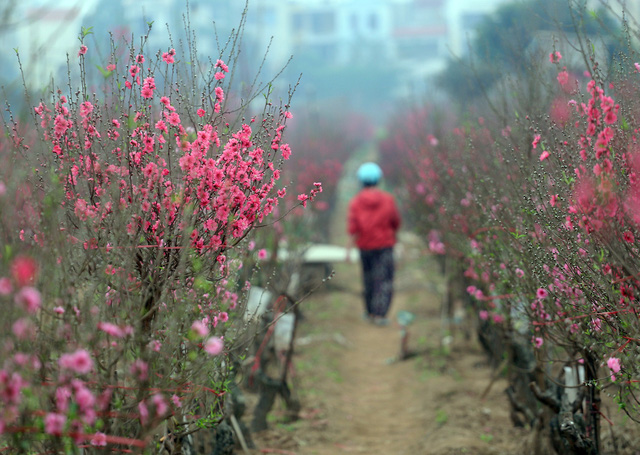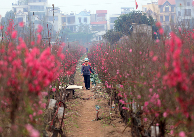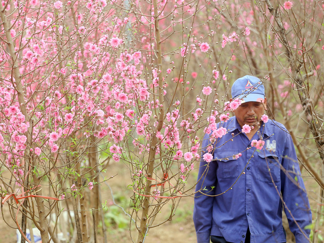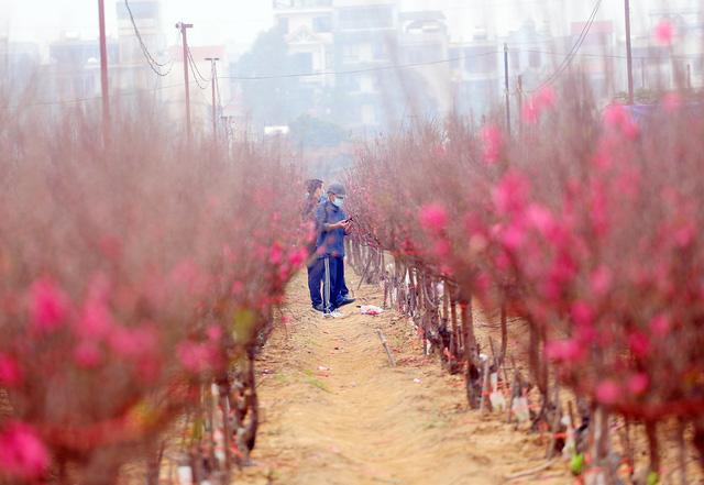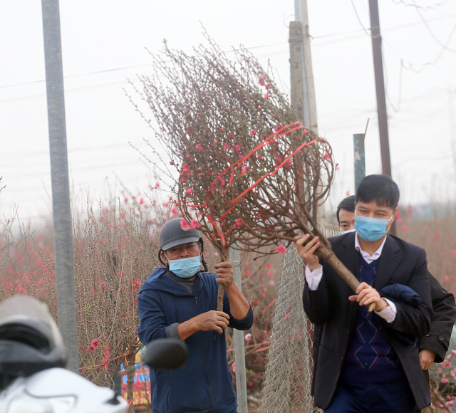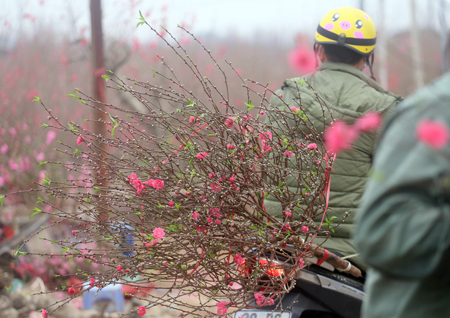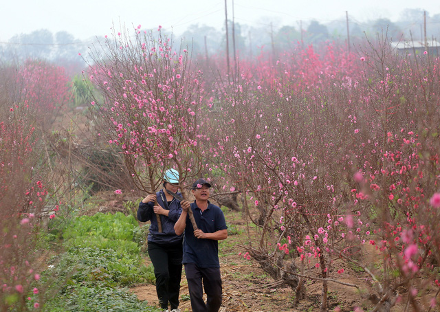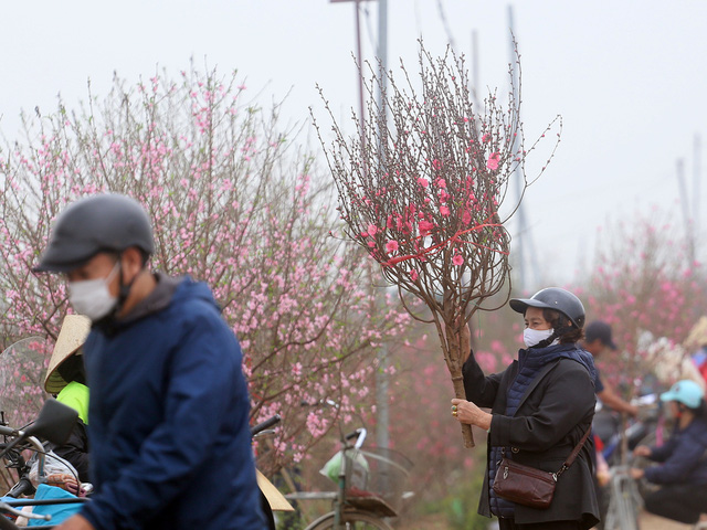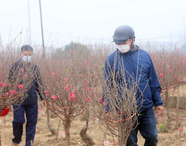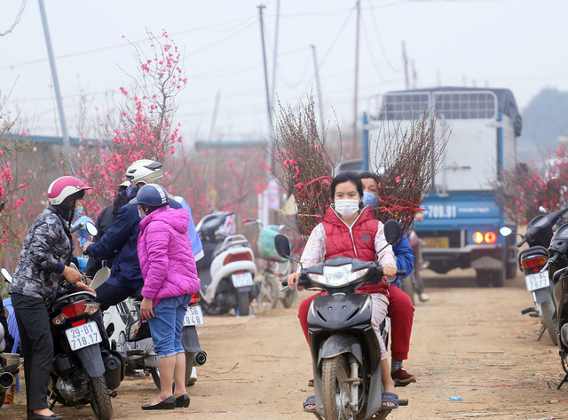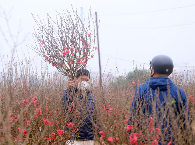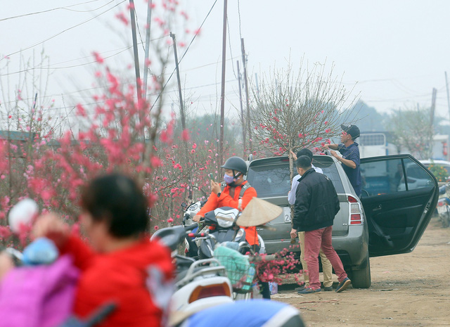 Dù đào được bán khắp nơi nhưng nhiều người vẫn dành thời gian có mặt tại Nhật Tân để chọn những cành đào Tết ưng ý nhất.