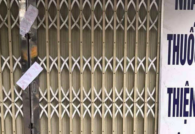 Nhà thuốc Thiện Tâm trên đường Kim Giang (quận Thanh Xuân, Hà Nội) bị niêm phong do tăng giá bán khẩu trang Ảnh: Doãn Mạnh.