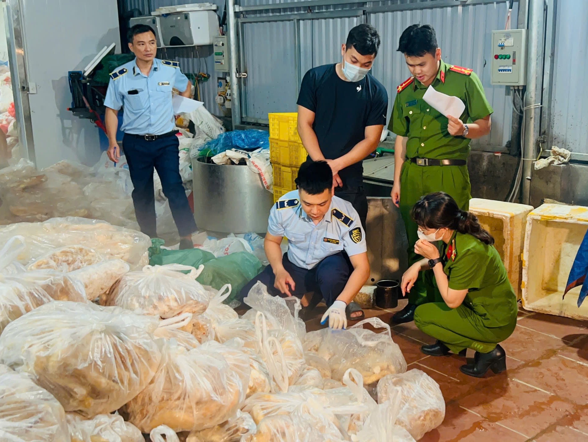 Thời điểm lực lượng kiểm tra, cả 3 kho đông lạnh đều cửa đóng then cài, điện tắt. Tuy nhiên, theo trinh sát, chỉ ít phút trước đó, hoạt động sơ chế, phân loại nội tạng vẫn diễn ra nhộn nhịp bên trong.