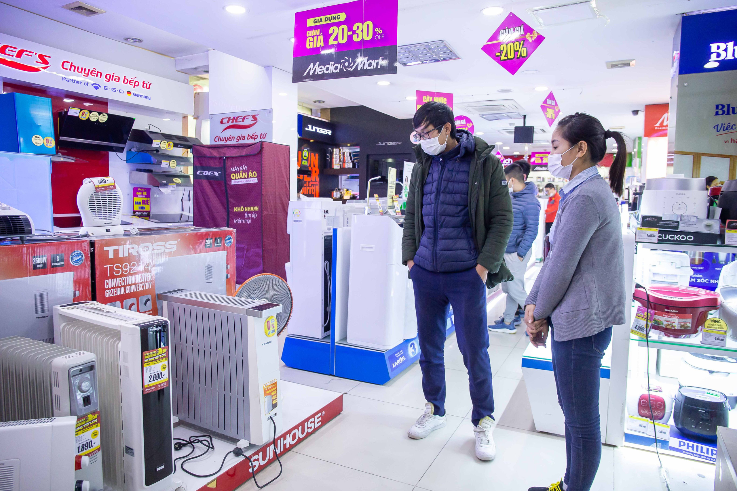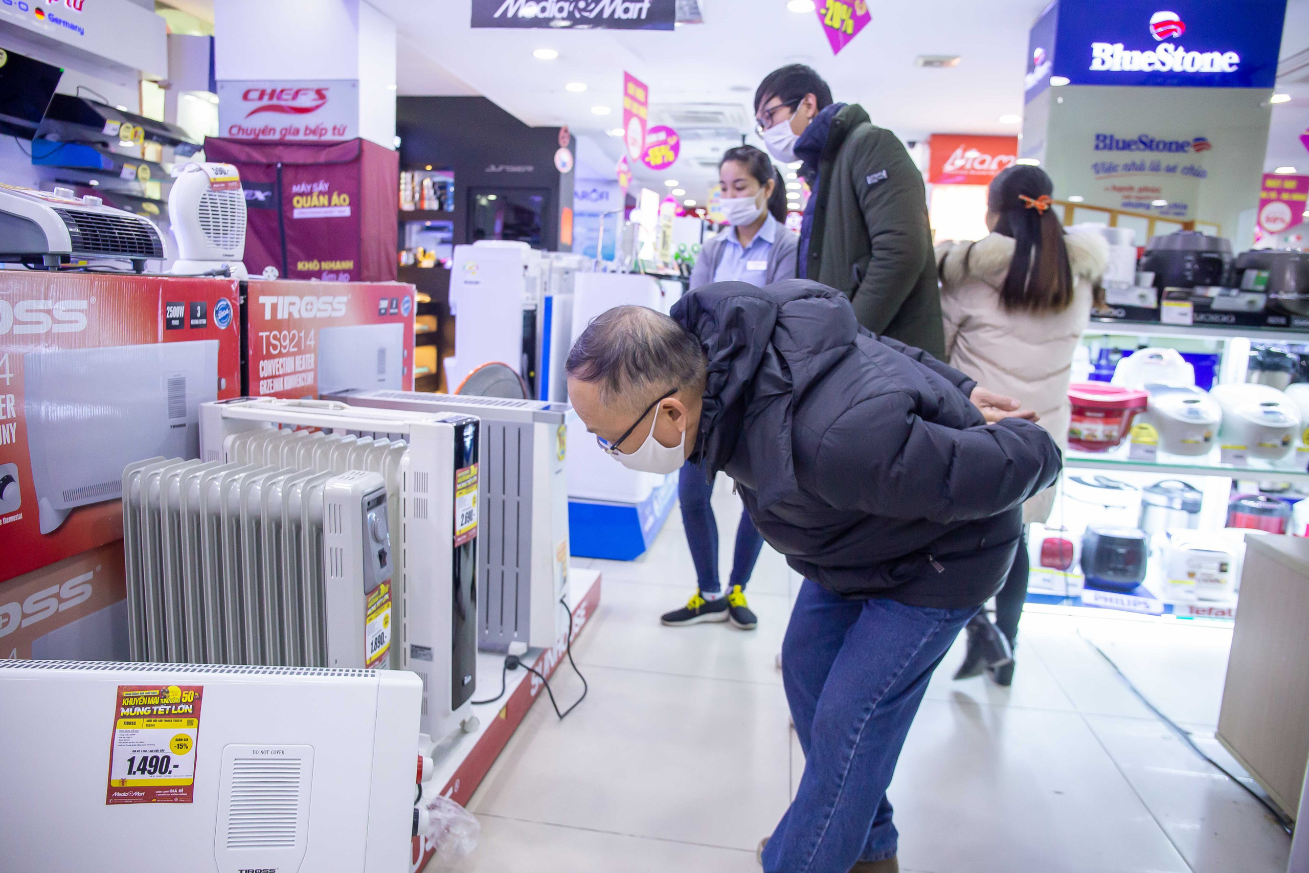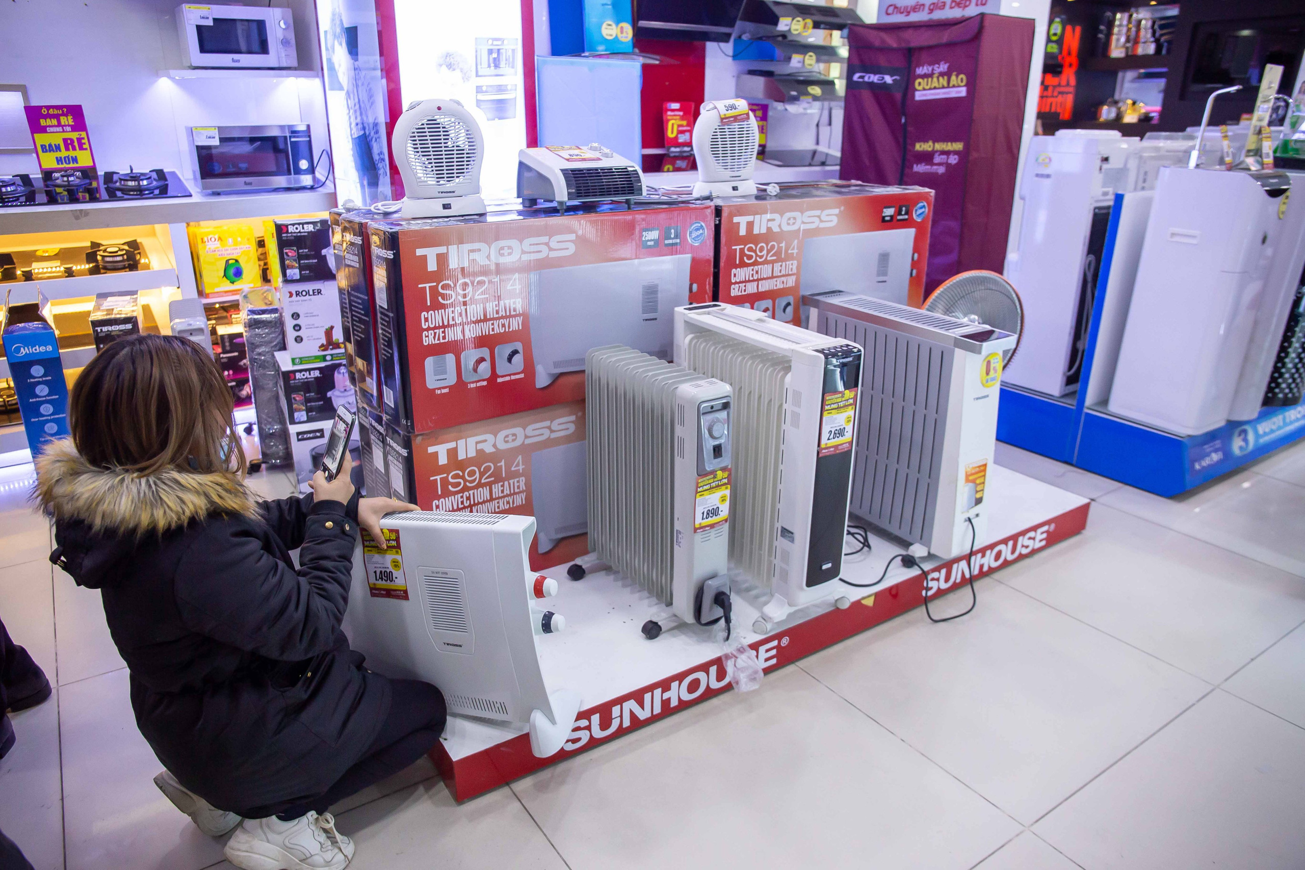 Một số siêu thị lớn chuyên đồ bán đồ điện máy, đồ gia dụng tại Hà Nội hầu hết khách hàng đến tìm đến tìm mua máy sưởi khá đông. Do nhu cầu của người dân tìm mua các sản phẩm giữ nhiệt, sưởi ấm tăng đột biến nên có nơi xảy ra tình trạng "cháy hàng".