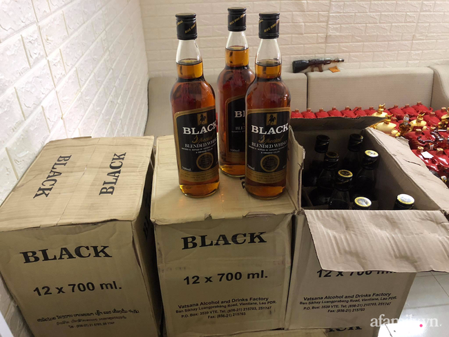 Hàng trăm chai rượu được sang chiết và đóng hộp dán nhãn các loại rượu do nước ngoài sản xuất đã bị lực lượng công an phối hợp cùng Đội Quản lý thị trường phát hiện và triệt phá.