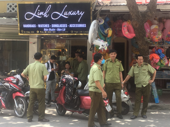 Kiểm tra tại một cửa hàng thời trang ở số 3 Hàng Điếu, đoàn kiểm tra đã tạm giữ 171 sản phẩm, bao gồm túi, ví, áo, phụ kiện thời trang, thắt lưng nghi ngờ giả mạo nhãn hiệu như Burrbery, Gucci, Chanel, LV,Hermes, Dior, Valentino, Ferragamo.