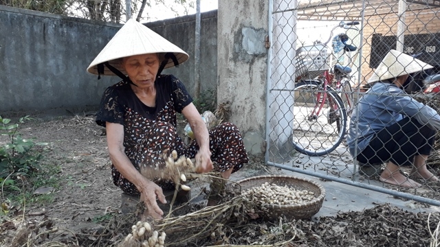 | Người dân huyện Lộc Hà sau khi thu hoạch lạc cứ phơi khô nhưng không có ai đến mua |