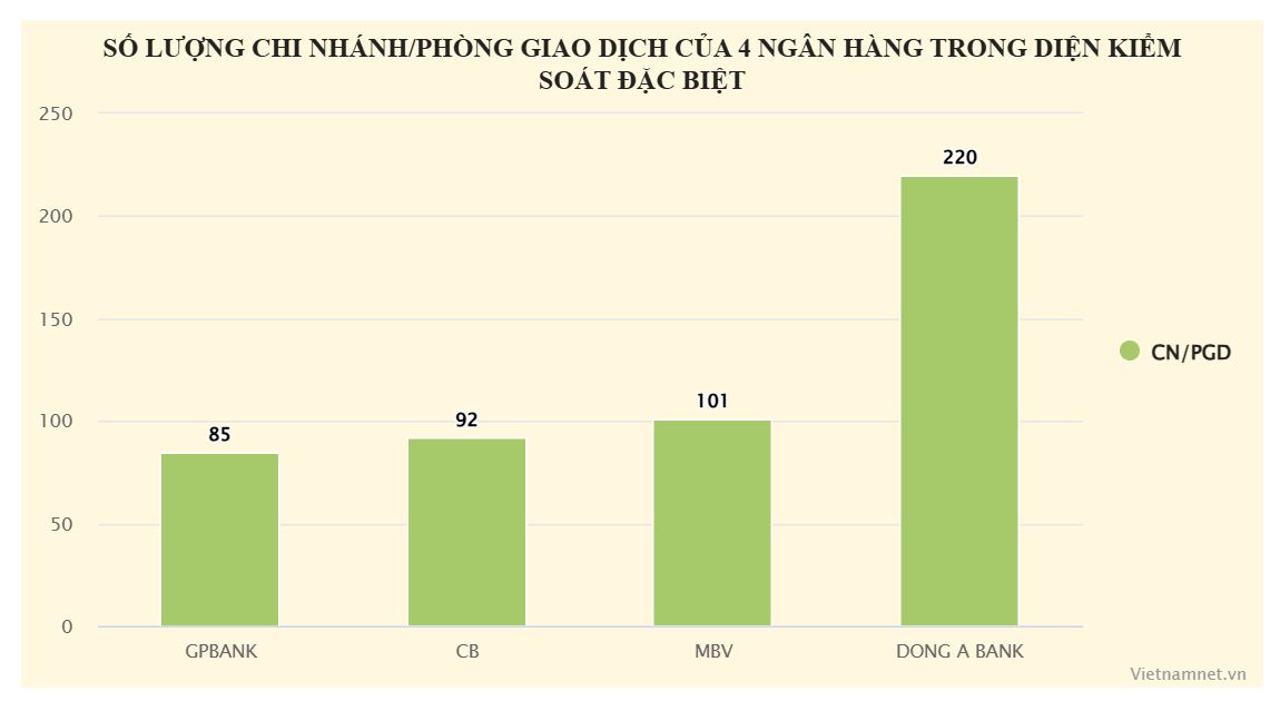Ngoài 4 ngân hàng đã và sắp chuyển giao bắt buộc là CB, MBV, GPBank và Dong A Bank, hiện còn Ngân hàng TMCP Sài Gòn (SCB) đang được NHNN đưa vào diện kiểm soát đặc biệt từ tháng 10/2022. NHNN vẫn đang áp dụng các biện pháp nhằm duy trì hoạt động ổn định của SCB, bảo đảm an toàn tiền gửi của khách hàng, đồng thời xử lý các tồn tại, yếu kém và vi phạm theo đúng quy định pháp luật.