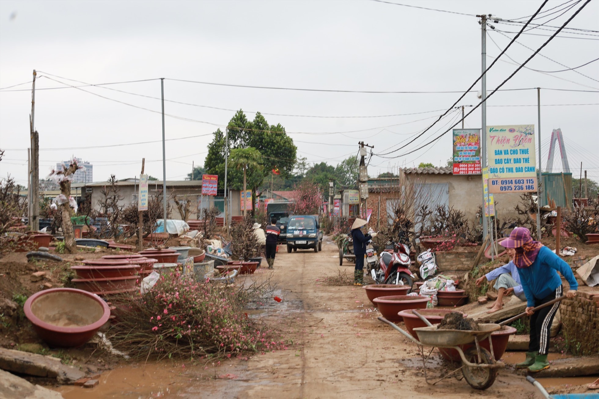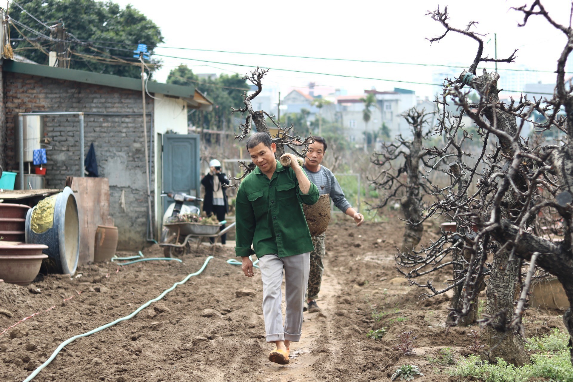 Thời điểm sau Tết, các chủ vườn đào tại Nhật Tân ở quận Tây Hồ, Hà Nội tất bật đưa hàng nghìn gốc đào quay về vườn chăm bón, chuẩn bị cho vụ tiếp theo. Nhu cầu tăng cao, nhiều nhà vườn quá tải nên đành phải từ chối khách.