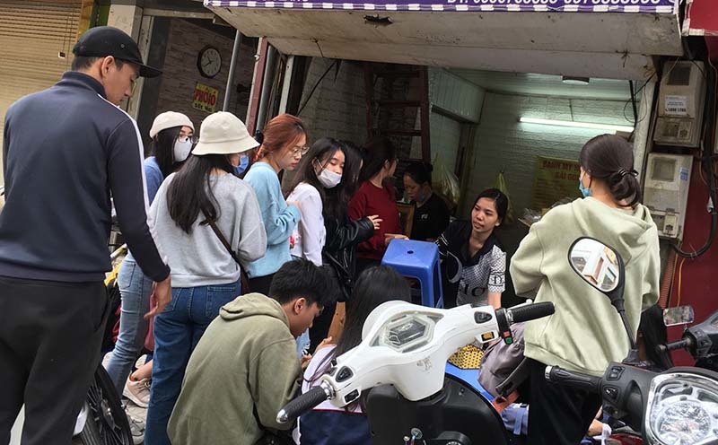 Song, nếu ai đi qua phố Chùa Láng (Hà Nội), chắc hẳn sẽ thấy quán bánh mì nướng muối ớt (loại bánh mì đang “làm mưa làm gió” ở TP.HCM) với vài ba chiếc ghế nhựa nhưng khách thì đông nghịt. Bên trong quán, mùi bánh mì nướng tỏa ra thơm phức, béo ngậy. Vào giờ cao điểm, dòng người xếp hàng càng đông làm sôi động cả một góc phố, khiến ai đi qua cũng phải tò mò ngoái lại nhìn.