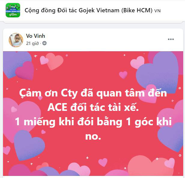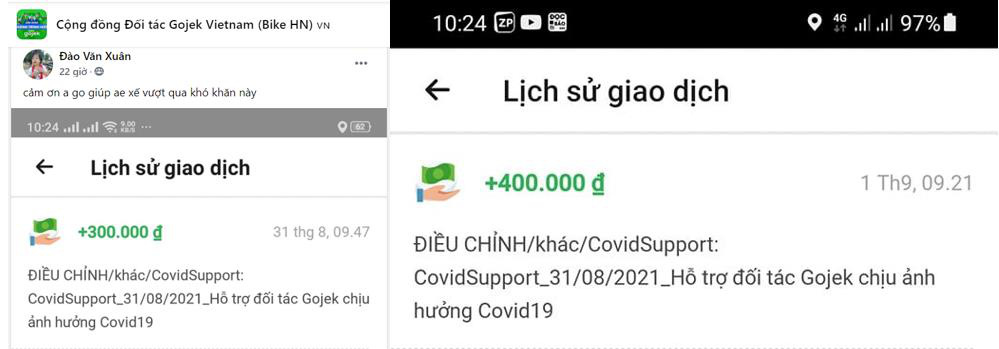 Rất nhiều tài khoản cũng đã chụp màn hình số tiền hỗ trợ vừa được chuyển về tài khoản với niềm hạnh phúc. Với những người lao động mưu sinh, vài trăm ngàn giữa dịch bệnh giúp họ mang về cho gia đình những bữa cơm ngon, mua được món đồ y tế cần kíp. Có thể thấy được điều đó ngay trong diễn đàn do các bác tài công nghệ lập ra thu hút hàng chục nghìn thành viên sẻ chia.