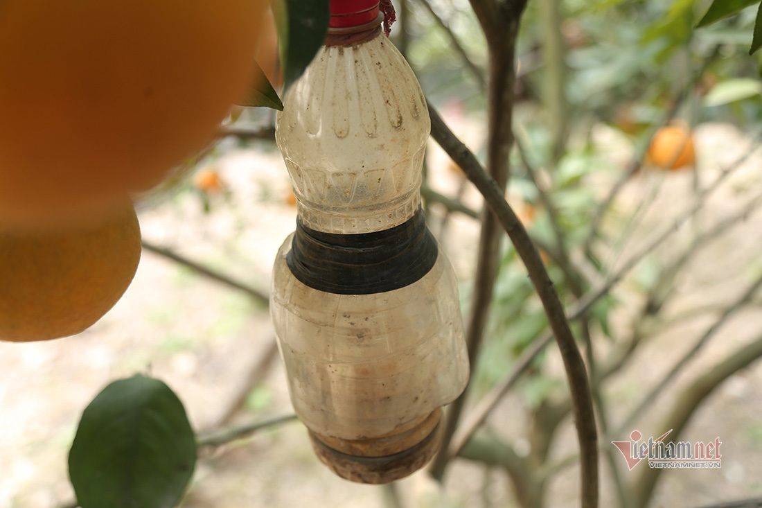 “Người dân ở Xã Đoài không bơm thuốc bảo vệ thực vật mà tự chế tạo phễu rồi đặt chế phẩm bên trong để bắt các loài sâu bệnh, ong bướm hại cây. Việc chăm sóc cây cam phải tránh hóa chất và phân bón hóa học, chỉ bón duy nhất mỗi năm một lần phân bò hoai mục”, ông Cường chia sẻ bí quyết chăm sóc cây cam.