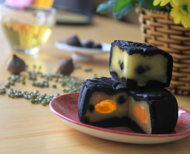Loại bánh có vỏ đen nhánh lạ mắt này đang thu hút sự chú ý của nhiều người. Vỏ bánh bằng bột mỳ pha chút tinh than tre, nhân giảm ngọt. Bánh trung thu làm từ tinh than tre được cho là rất tốt cho sức khỏe bởi chứa các thành phần như kali, canxi, sắt, natri… giúp thải độc tố. Hiện nay, trên thị trường, bánh trung thu tinh bột than tre đang được bán với mức giá chừng 65.000 đồng/chiếc. (Ảnh: VTV)