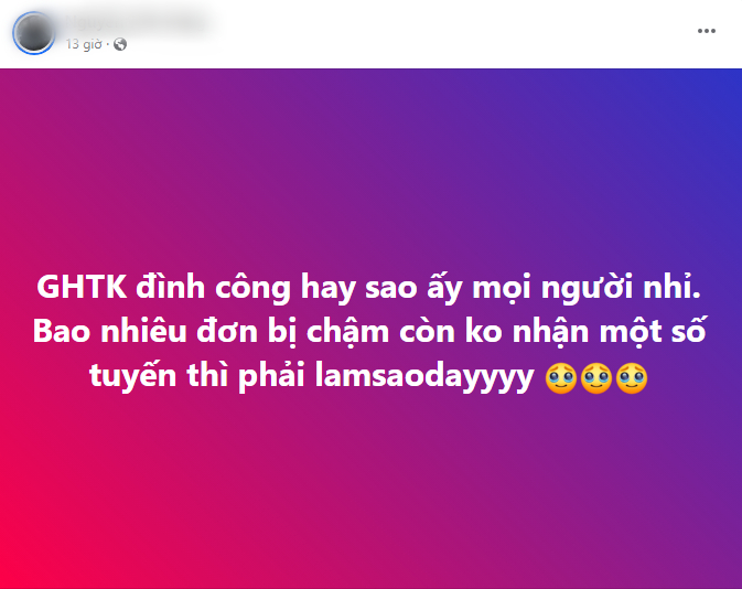 Mới đây MXH xôn xao trước thông tin về việc nhiều nhân viên đơn vị vận chuyển Giao hàng tiết kiệm đình công, dẫn đến việc các đơn hàng gặp khó khăn trong việc chuyển phát đến khách hàng. Trên MXH, nhiều chủ shop online "kêu trời" vì đơn hàng đã giao cho đơn vị vận chuyển nhiều ngày nhưng khách hàng vẫn chưa nhận được. Thậm chí có những shop đã phải ngừng nhận đơn hàng đi một số tỉnh, thành vì không thể tìm được đơn vị vận chuyển.
