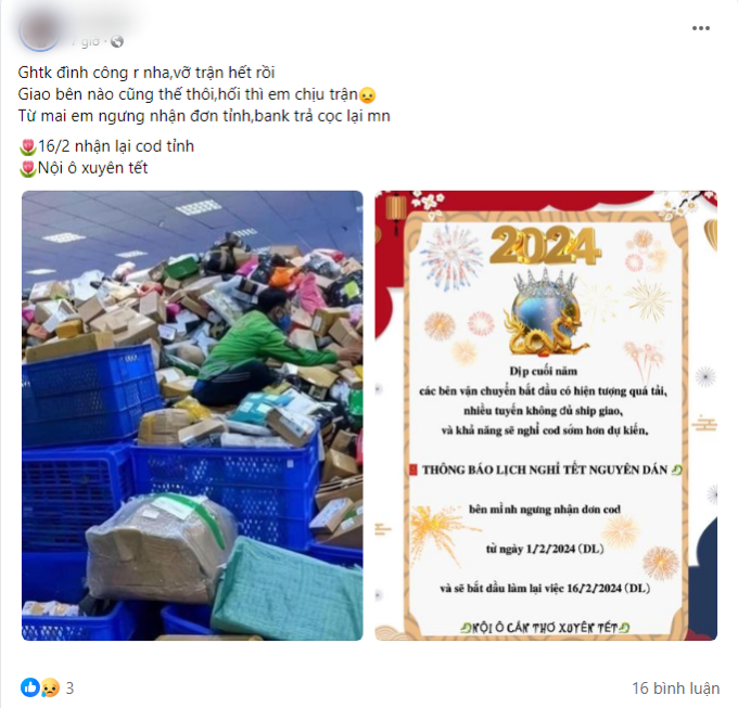 29/01/2024 21:55Hàng loạt chủ shop khóc ròng vì không giao được đơn đúng dịp cao điểm Tết Nguyên đán, điều gì đang xảy ra với Giao hàng tiết kiệm?