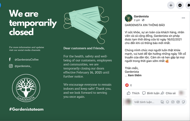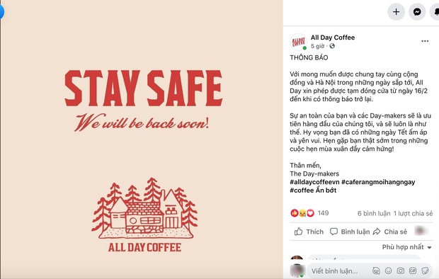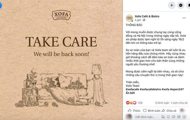 Dưới đây là những quán cà phê đã nhanh chóng chuyển sang "chế độ" online hoặc đóng cửa tạm thời kể từ ngày hôm nay, thời gian mở cửa sẽ được thông báo sau: