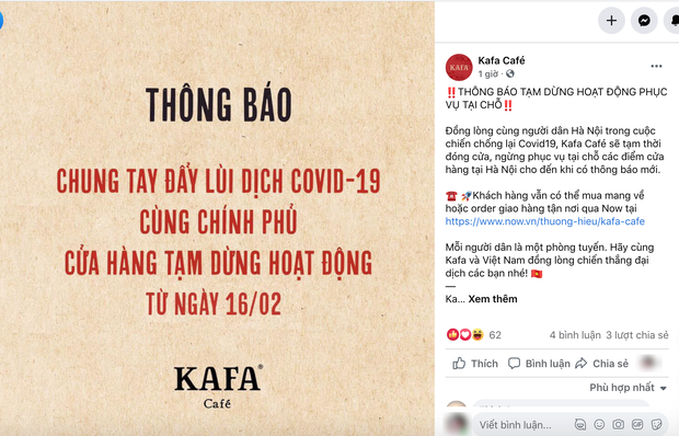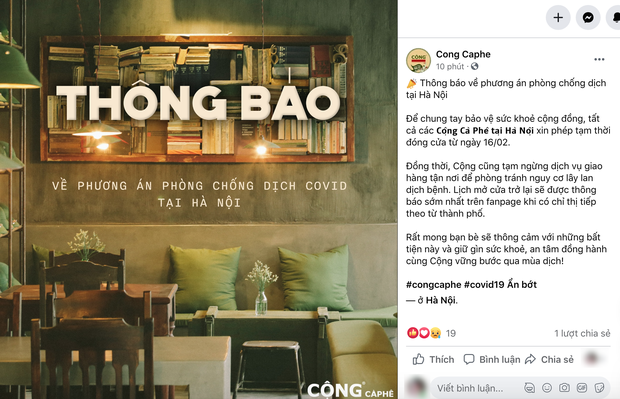 Trong cuộc họp của Ban chỉ đạo phòng chống Covid-19 Hà Nội diễn ra vào chiều ngày 15/2, Phó Chủ tịch UBND TP - Ông Chử Xuân Dũng đã yêu cầu đóng cửa quán ăn đường phố, trà đá, cà phê từ 0h ngày 16/2. Ngay lập tức, rất nhiều quán cà phê ở Hà Nội đã chuyển sang bán online hoặc tạm thời đóng cửa để hạn chế tiếp xúc đông người, giúp ngăn chặn bệnh dịch lây lan.