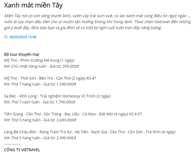 Ngoài chùm tour lịch sử, hướng về cội nguồn, Công ty du lịch Vietravel còn đánh dấu sự trở lại thị trường bằng chùm tour kích cầu đến các khu vực miền Tây, Đông Nam Bộ, Nam Trung Bộ hay Tây Nguyên - nơi có khí hậu mát mẻ để du khách "tránh nóng".