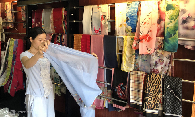Từ giờ đến lúc trả nhà, chị cho biết cố gắng xả hàng, giảm giá cà vạt chỉ còn đồng giá 50.000 đồng một chiếc mà trước thường bán cho khách nước ngoài 6 USD, khăn có loại cũng chỉ còn 80.000 đồng, 100.000 đồng (trước có giá 13-15 USD). Dù bán lỗ vốn như vậy, cửa hàng này cũng chỉ có vài vị khách Việt Nam ghé thăm trong ngày cuối tuần.