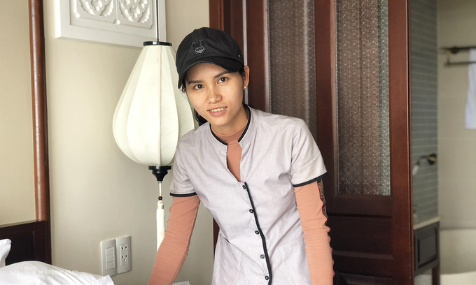 Lai - người làm buồng duy nhất tại khách sạn Cozy Savvy, cách phố cổ 1 km cho biết, cô là người duy nhất ở bộ phận này còn trụ lại đây. Năm ngoái, khách sạn này đã đóng cửa hai lần vì dịch kéo theo lượng nhân viên giảm dần, đến nay chỉ còn 1 người cho mỗi bộ phận. "Giờ tụi em chỉ phục vụ vài phòng vào những ngày cuối tuần. Nhưng như em vẫn còn may, mấy đứa bạn giờ chỉ làm chục ngày trong tháng, lương khoảng 1.500.000 đồng", Lai cho hay.