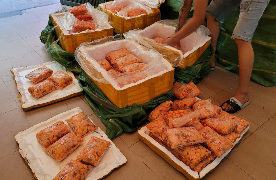 Vào ngày 13/9/2020, Đội QLTT số 2 phối hợp với Công an huyện Bát Xát, tỉnh Lào Cai bắt giữ lô hàng thực phẩm đông lạnh nhập lậu gồm: 240kg nầm lợn và 120kg trứng gà non đang tập kết tại tỉnh lộ 156A, địa phận thôn An Quang, xã Quang Kim, huyện Bát Xát. Chủ hàng không xuất trình được hóa đơn, chứng từ liên quan đến lô hàng.