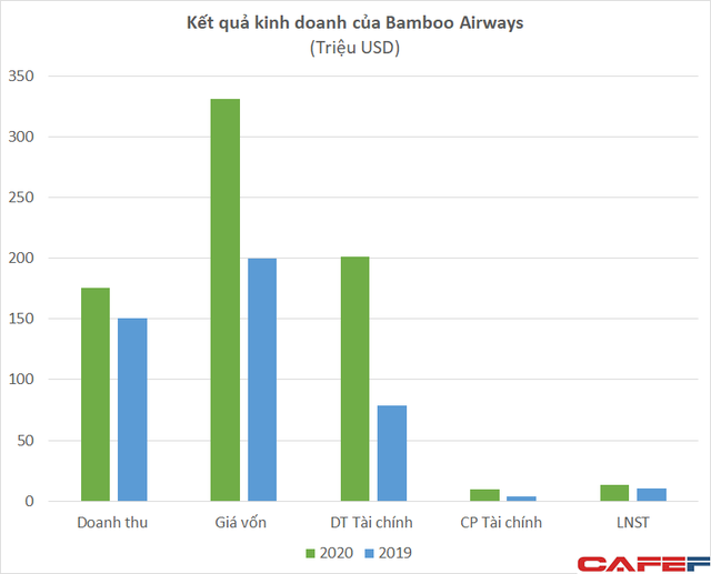 Năm 2020, Bamboo Airways đạt hơn 175 triệu USD doanh thu, tăng 16%. Tuy nhiên, do ảnh hưởng của đại dịch COVID-19 ảnh hưởng nặng đến ngành hàng không nói chung, Bamboo lỗ gộp 156 triệu USD, gấp hơn 3 lần.