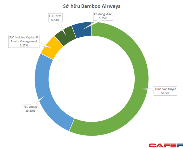 Cơ cấu cổ đông của Bamboo Airways như sau: Ông Trịnh Văn Quyết sở hữu 56,5%; Tập đoàn FLC sở hữu 26,85%; FLC Holding Capital sở hữu 6,27%; FLC Faros sở hữu 5,63%; phần còn lại thuộc về các cổ đông khác. Ông Trịnh Văn Quyết và các công ty có liên quan đang nắm trên 94% cổ phần hãng hàng không.