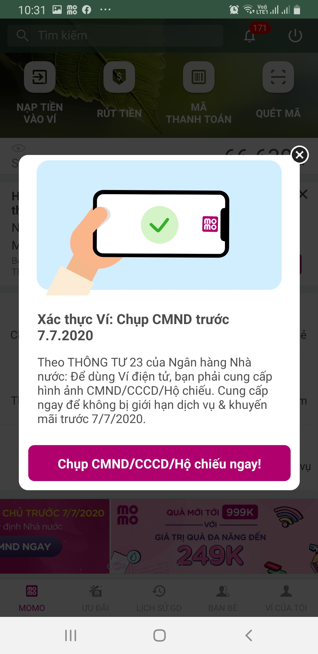 Hàng loạt các ví điện tử đang phát đi thông báo yêu cầu người dùng bổ sung thông tin cá nhân để xác thực tài khoản. Theo đó, thông tin mà chủ sở hữu ví điện tử cần phải cung cấp gồm ảnh chụp mặt trước và sau chứng minh nhân dân/căn cước công dân/hộ chiếu còn thời hạn cho các đơn vị quản lý ví điện tử để hoàn tất thủ tục xác thực tài khoản.
